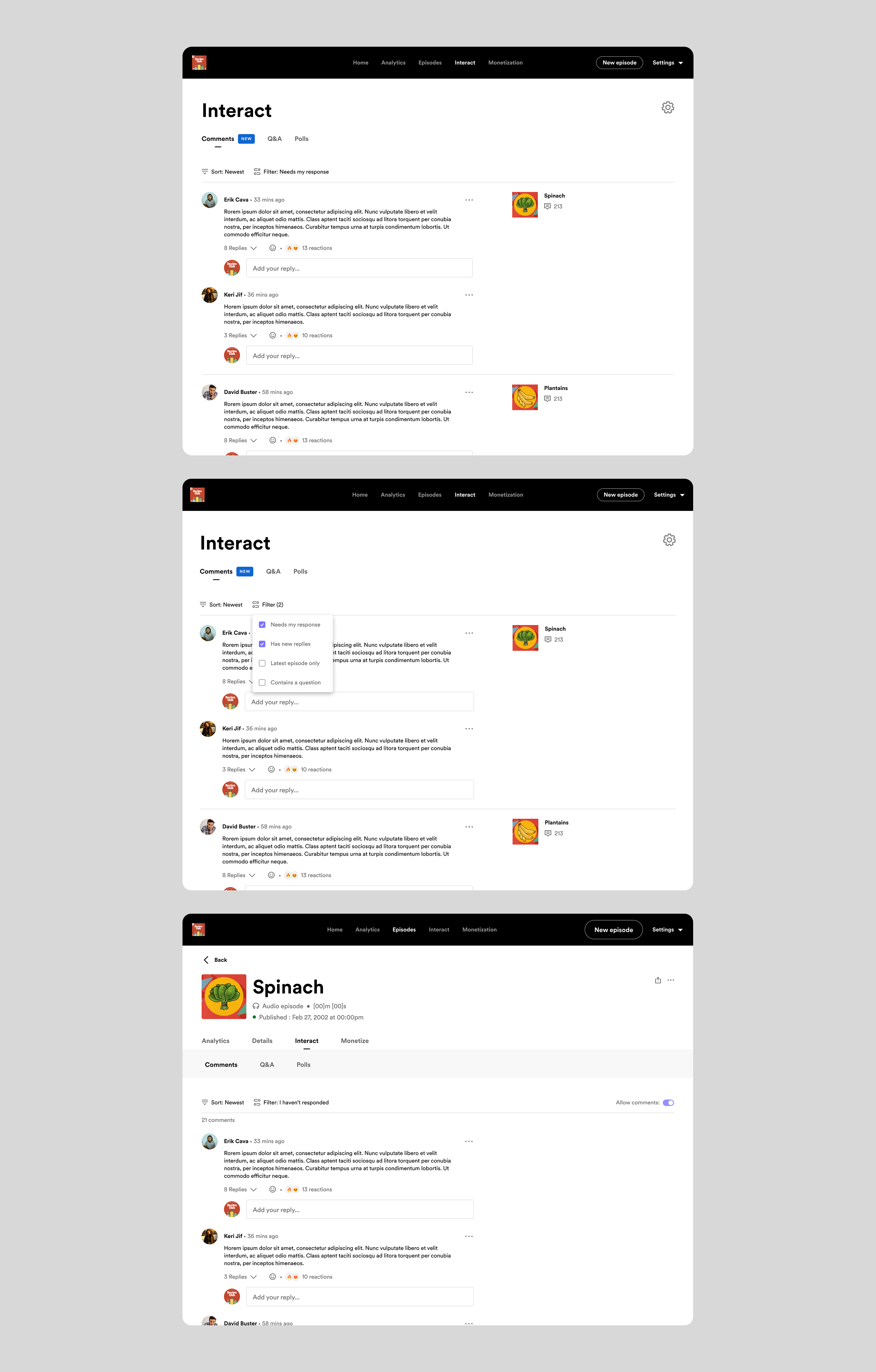 Spotify for Podcasters mobile app: interact tab