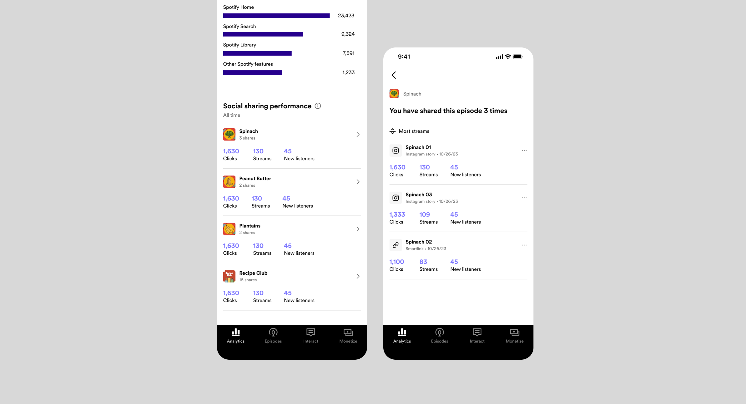 Spotify for Podcasters is a platform for podcast creators to upload, manage, and track the performance of their podcasts. I served as designer for squads focused on interactivity as well as podcaster growth.